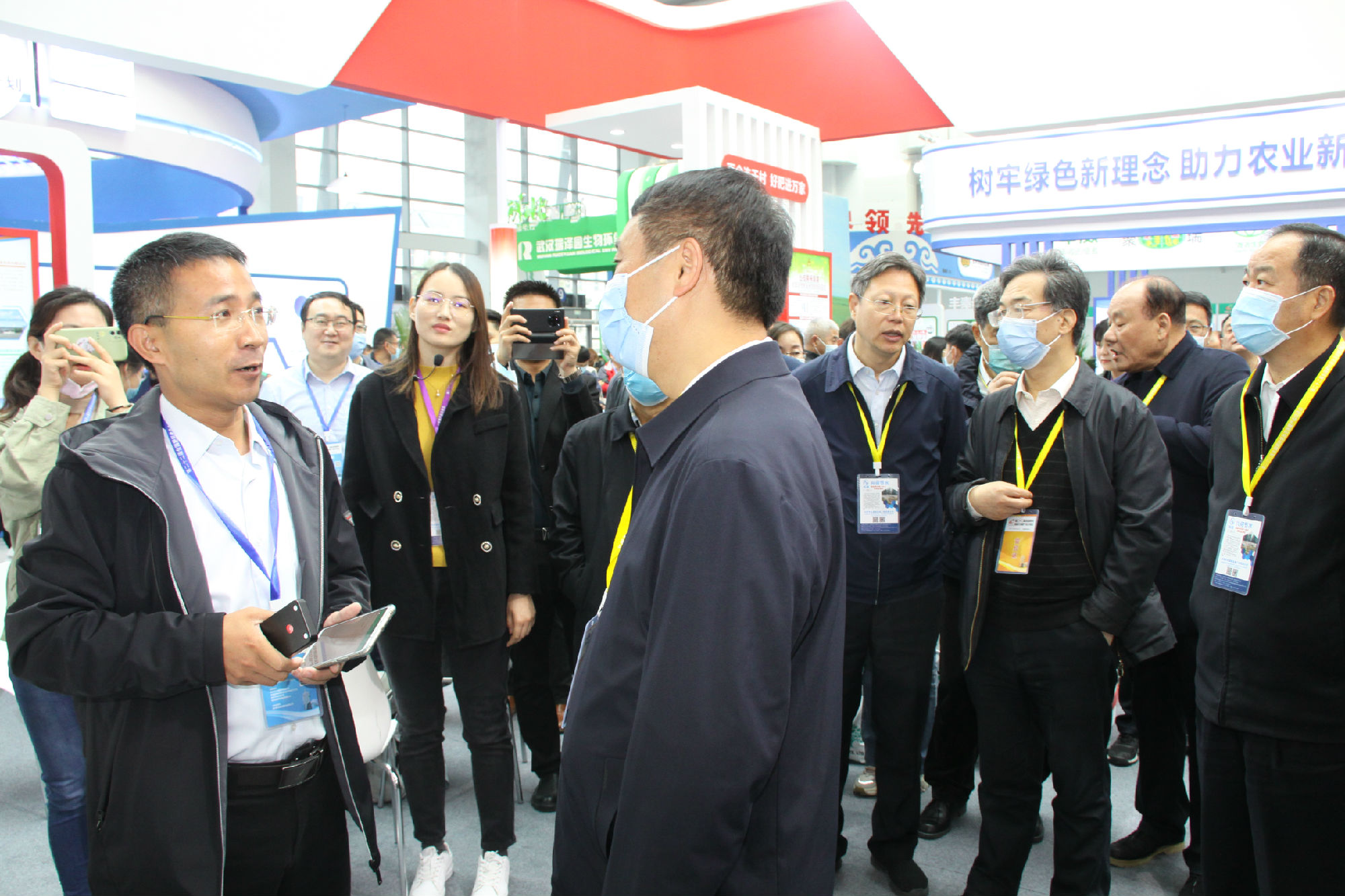 以“百企连千村,好肥进万家”为主题的江苏展区亮点纷呈,格外引人注目。农业农村部种植业管理司司长潘文博,全国农业技术推广服务中心主任、党委书记魏启文,工程院院士、西北农林科技大学教授康振生,中国农业技术推广协会会长陈生斗等领导和专家在江苏省耕地质量与农业环境保护站王绪奎副站长陪同下在江苏展区先后驻足观看。